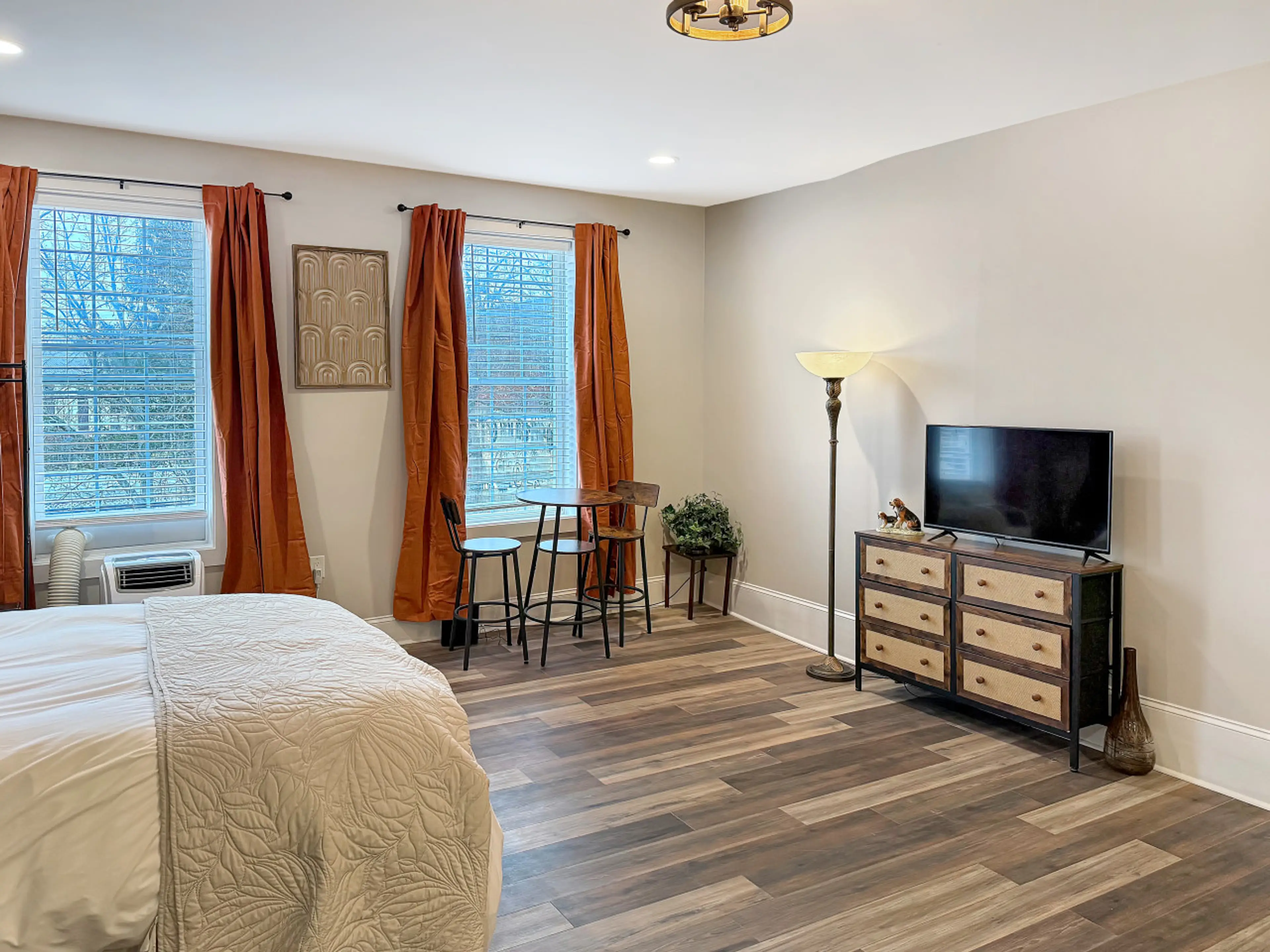 Welcome to a cozy, pet-friendly studio in Historic Harmar Village! Stay in a charming historic building originally built in the 1900's, just a short walk from downtown Marietta. Enjoy a comfy queen bed, Smart TV, private bath with rain shower, and a simple kitchen with stove, microwave, and mini fri...